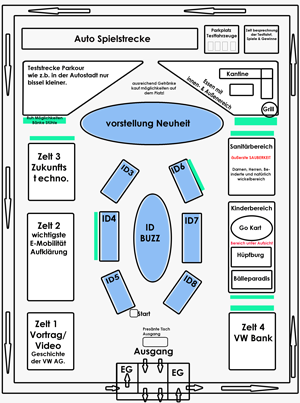 Hier kann man ja nicht wirklich viel zu schreiben. Wie ich im Vorbericht ja schon gesagt habe, ist es eine gute Frage welche Auto man ausstellen soll. Nur die reine ID Serie von VW oder auch E Fahrzeuge aus Tochterunter nehmen. Als Highlights ein E-Tron oder Porsche. Oder stellt man halt nicht nur einen ZUG zusammen der durch Deutschland/EU fährt oder mehrere Zügen. 1X VW, 1x Seat und so weiter.